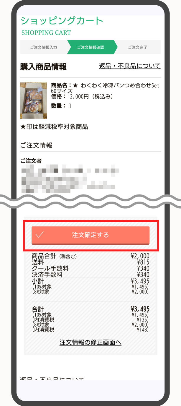 注文情報の確認と 注文確定